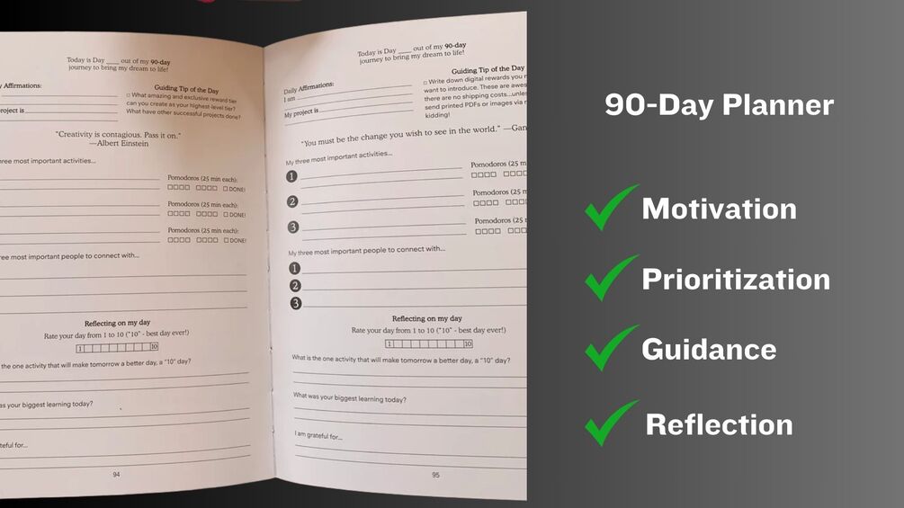 • Practical Planning: Utilize the powerful Pomodoro Technique to manage your time and tasks effectively throughout your 90-day journey.